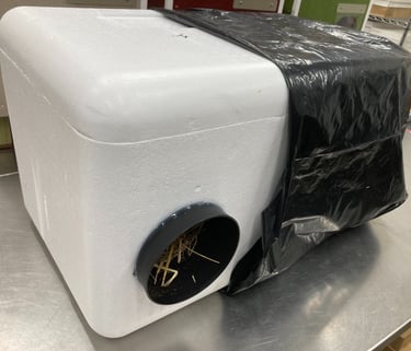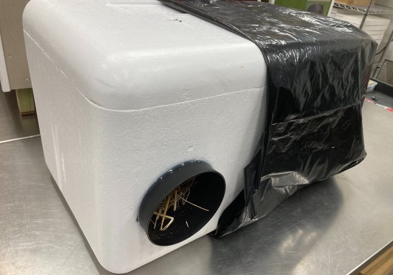 These are easy to construct, and can be made quickly with minimal cost. Styrofoam coolers are usually recycled or thrown away, so they may be found cheaply or for free. The ideal size is around 16" x 24" x 16" tall.